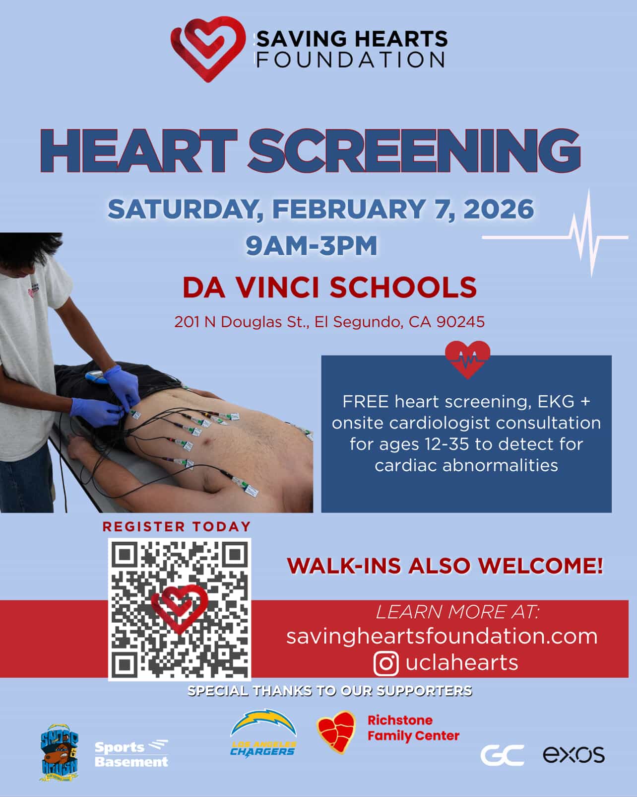 Your heart health matters—on and off the field. We’re excited to invite all Da Vinci students, student-athletes, and community youth to a FREE Heart Screening Event hosted by the Saving Hearts Foundation.