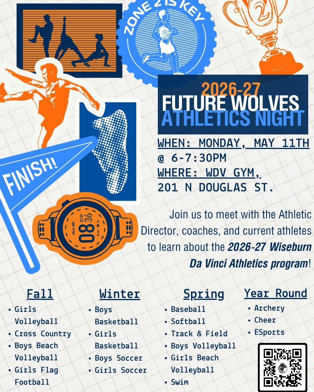 Whether you’re ready to compete or just exploring your options, we’d love to help you find your place in the Wolves community. Scan the QR code or click here to let us know you will join us on May 11th!