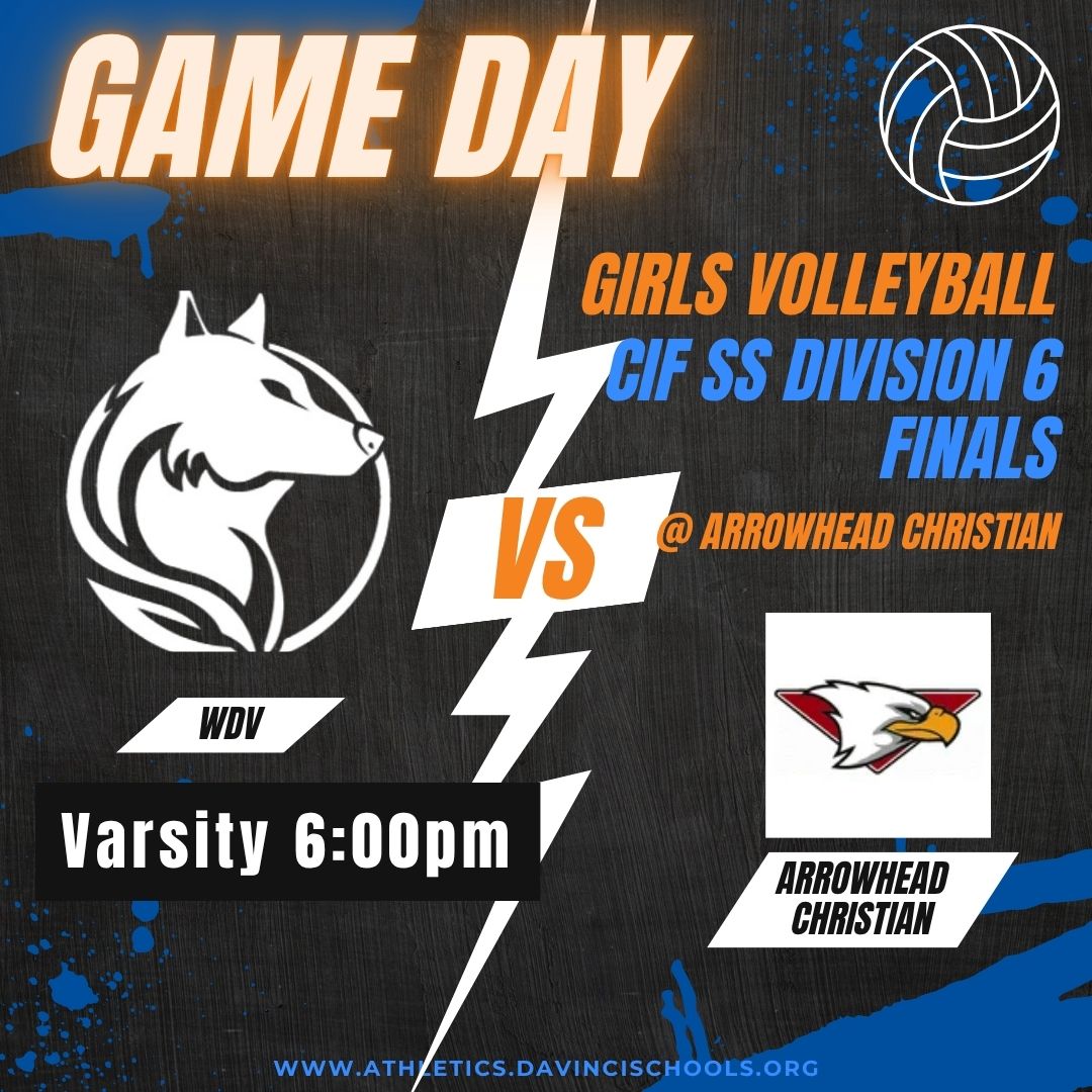 The stage is set for a championship showdown! Tonight at 6:00 PM, your Wiseburn Da Vinci Wolves take on Arrowhead Christian in the CIF Southern Section Division 6 Girls Volleyball Finals. After an incredible playoff run filled with grit, teamwork, and heart, the Wolves are ready to make history.