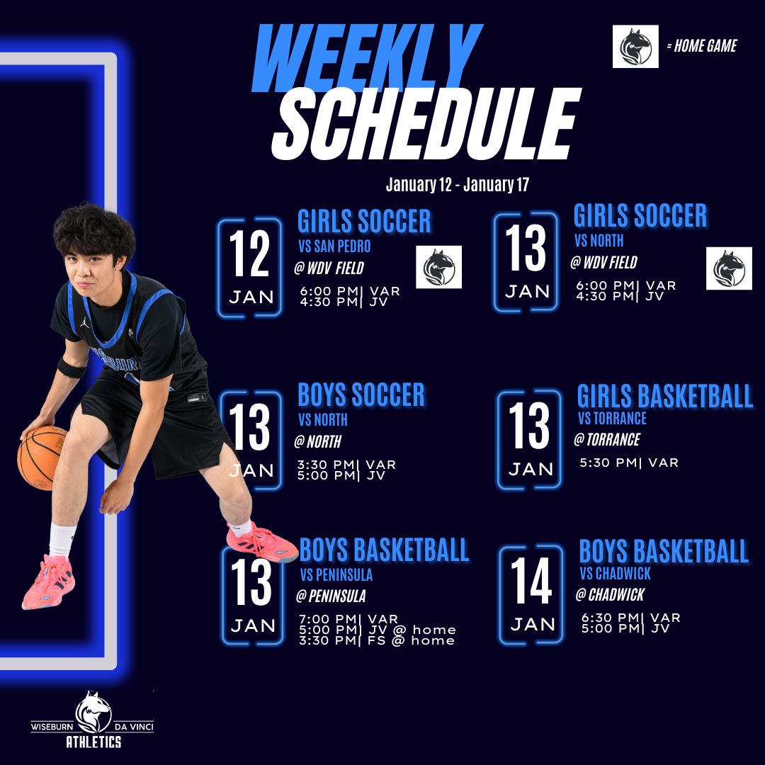 Weekly Game Schedule and Announcements – 1/12/26 – 1/17/26