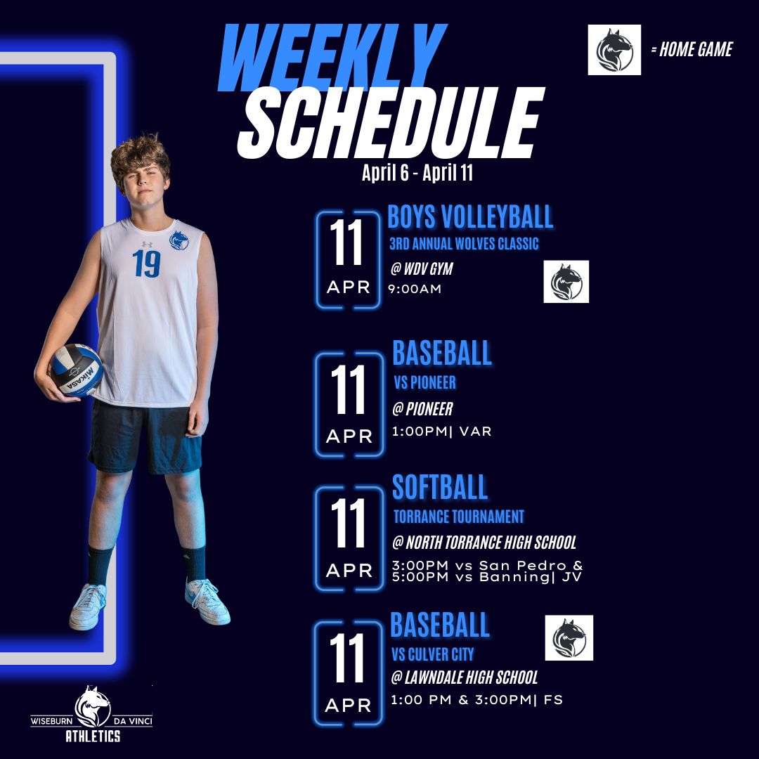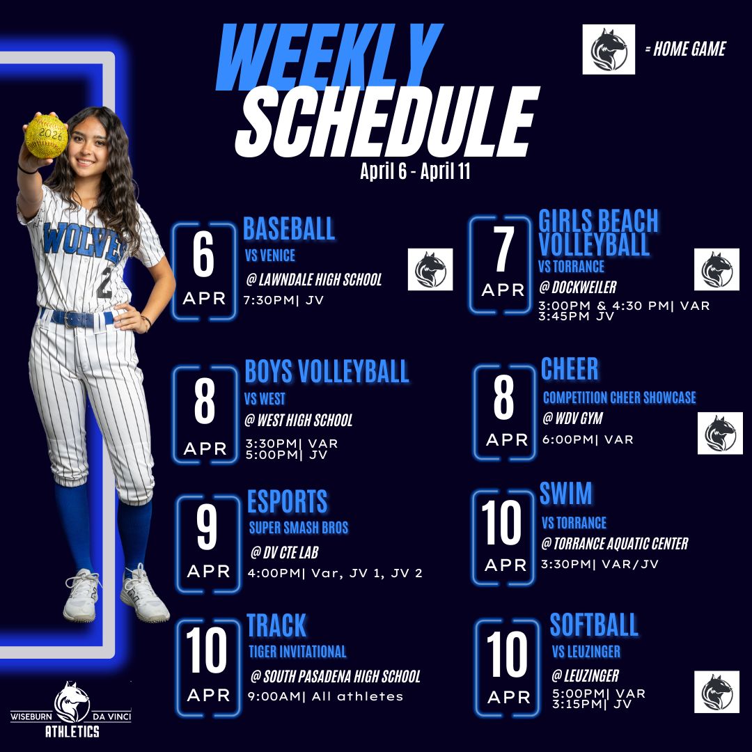 Wiseburn Da Vinci Athletics Weekly Schedule 4/6-4/11