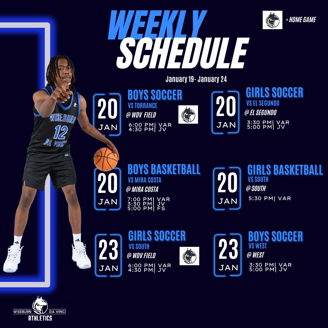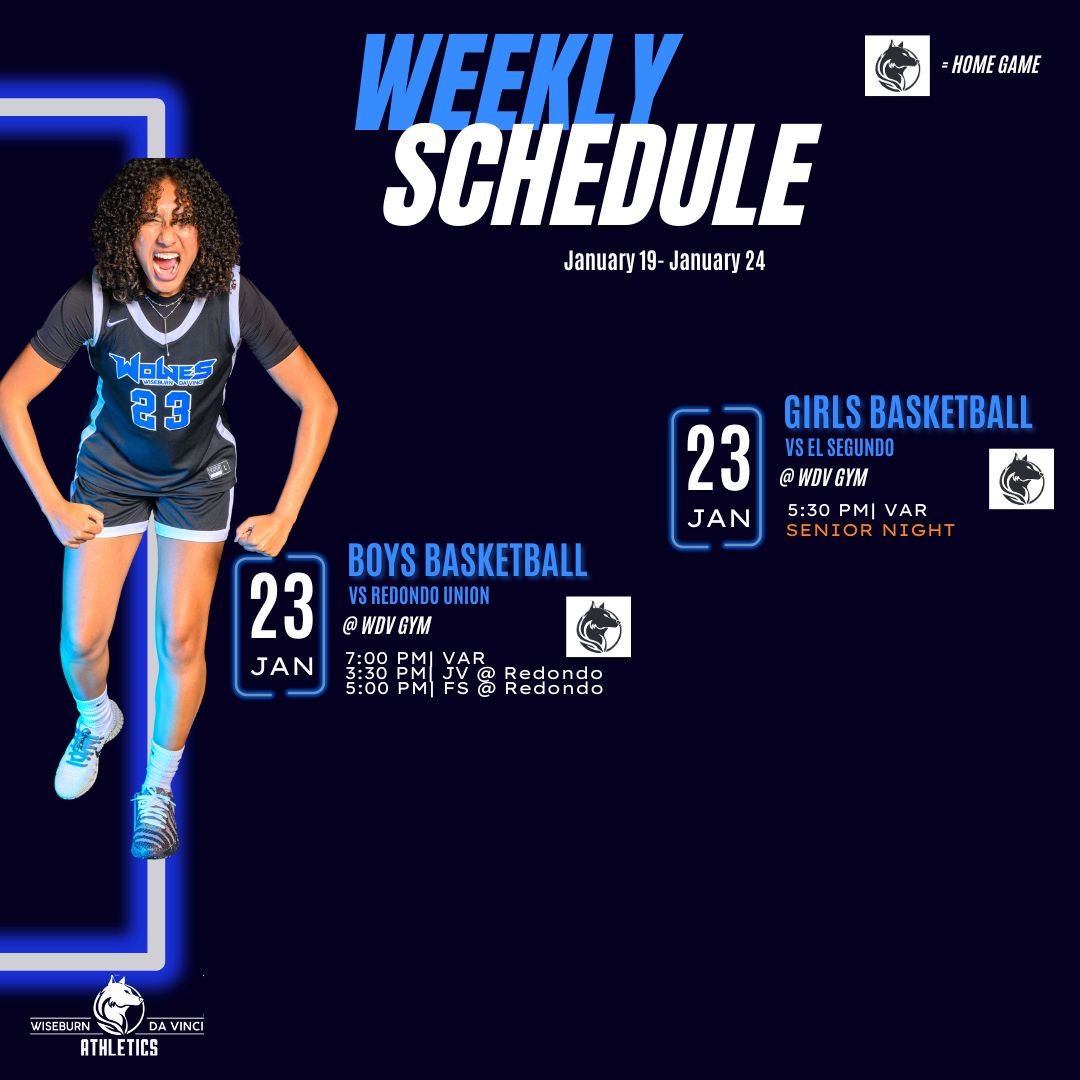 It’s a short week for our students but a week packed with sports for our student-athletes! Here is the schedule for your Wiseburn Da Vinci Wolves this week!