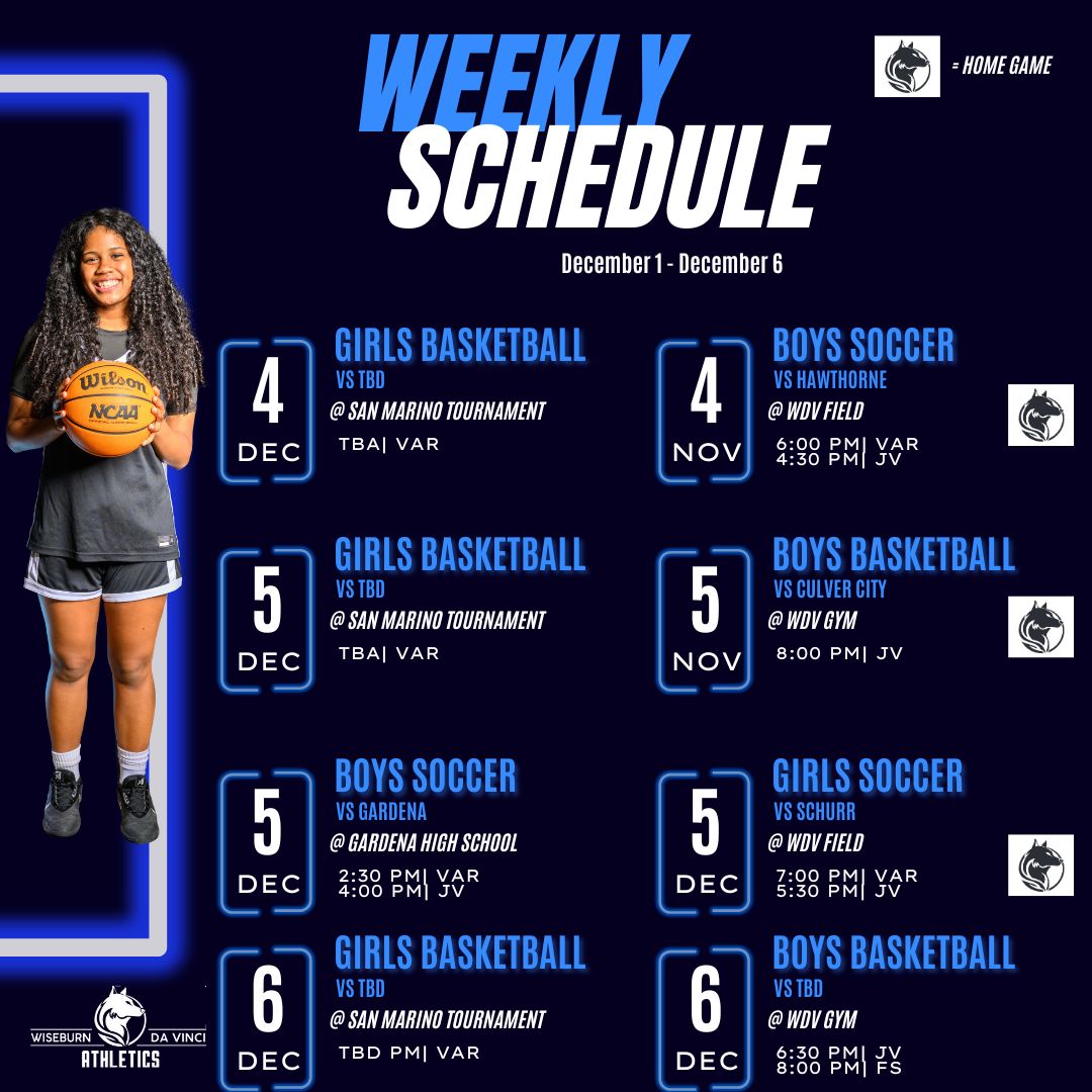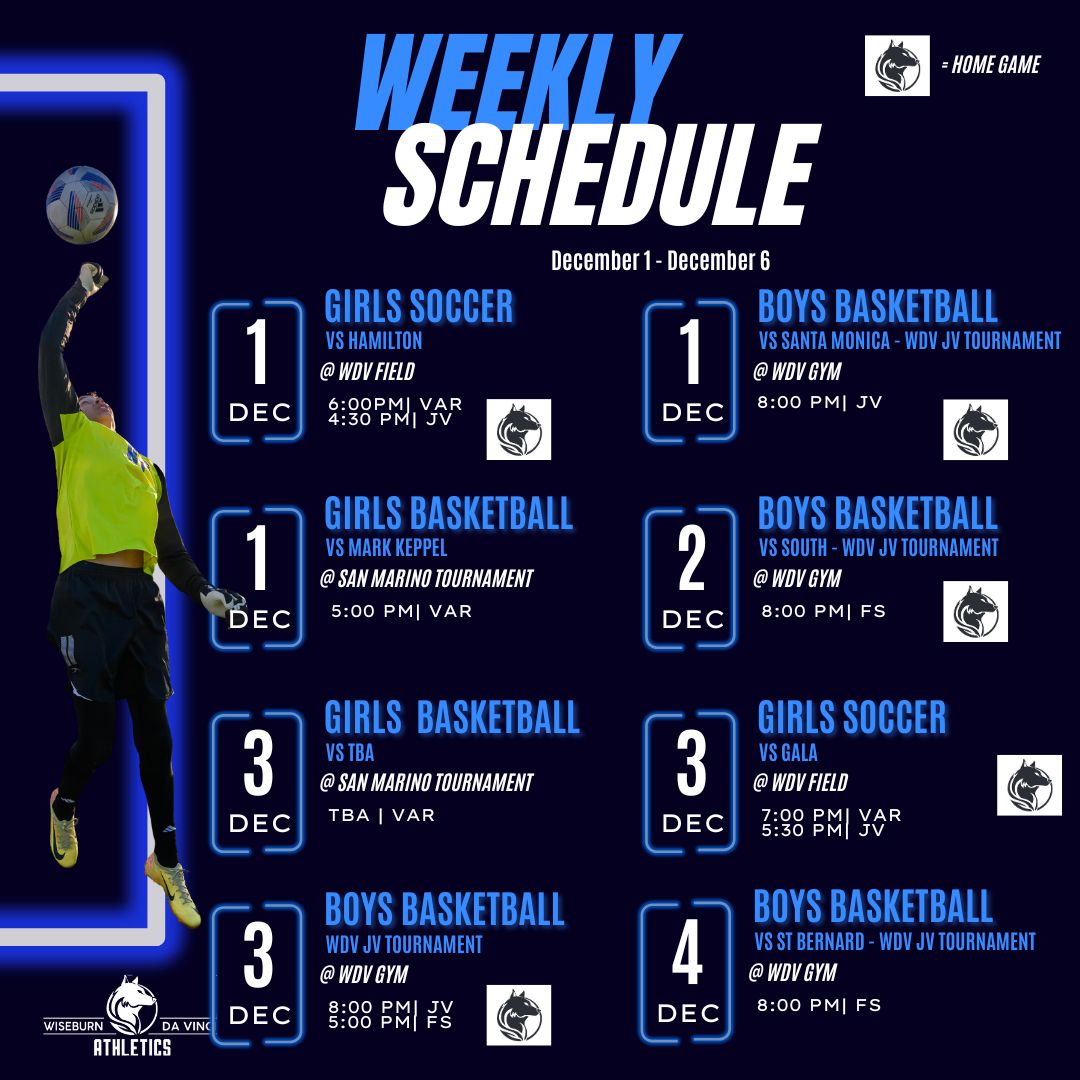 WDV Athletics Weekly Game Schedule and Announcements – 12/1-12/6