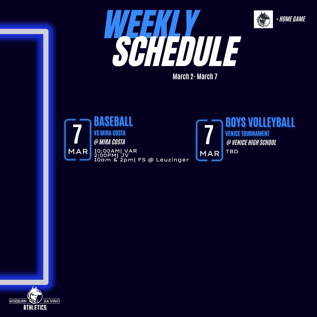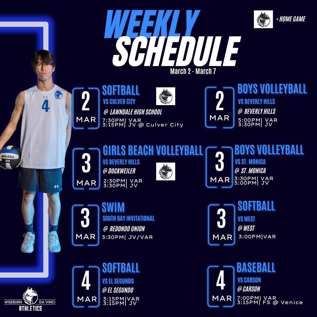 Wiseburn Da Vinci Athletics Schedule – 3/2-3/7